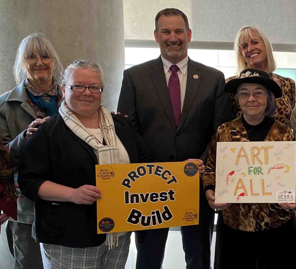 our doors open and provide for arts education, events and programs. The California Arts Council also provides Arts Education and Operating Support to Musica Sierra of Loyalton. Suzi and B.J. carried a sign, hand-made by Rudy Jackson, displaying the simple message “Art for All”. We were well-received by our legislators, Senator Brian Dahle and Assemblywoman Megan Dahle. Megan loved the sign and kept it as a gift.