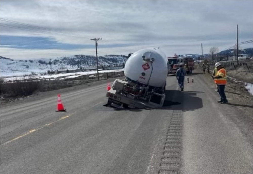 (Beckwourth, March 28, 2023) Yesterday afternoon, a driver with High Sierra Gas suddenly found himself in an unusual situation — sinking on Highway 70 near the Nervino Airport in Beckwourth. The incident occurred in the westbound lane just west