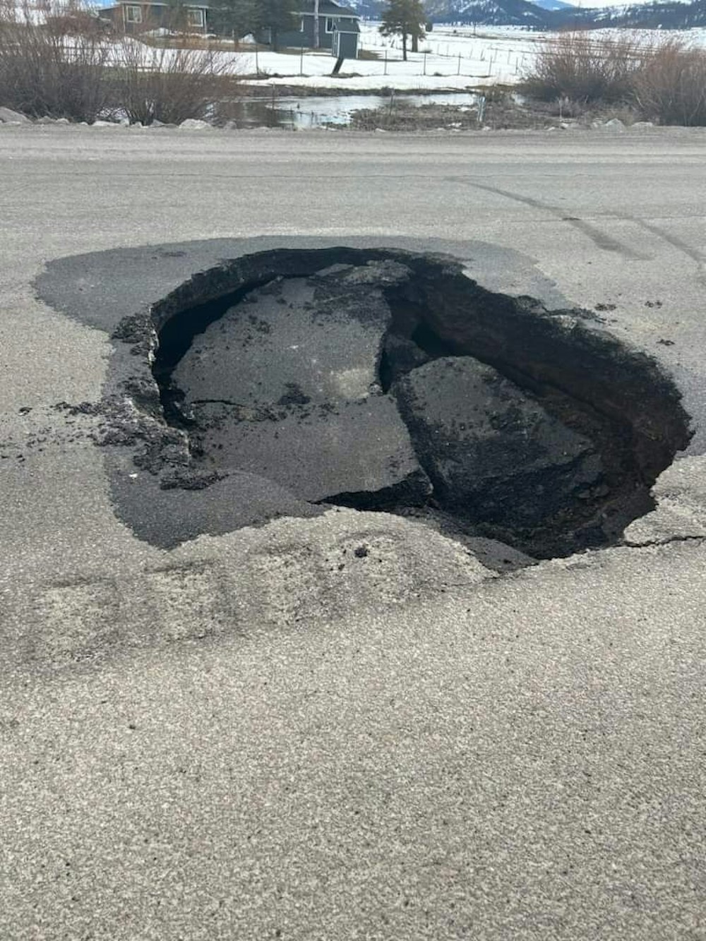 take the bus into Beckwourth. That might work for the time being, but according to the CHP, at some point barriers will be erected. As of now, the closure is staffed. This is a developing story that will be updated as more information becomes available. Provided by Caltrans Dist. 2 via Facebook on Wed., March 29 State Route 70 remains closed in the Beckwourth area, from County Road A-23 to County Road A-24, due to an active sinkhole. Since the closure on Monday, March 27, the sinkhole has grown in size and is approximately 8-feet wide and 6-feet deep and encompasses the full width of the westbound lane. Caltrans District 2 is working to make the area safe for motorists as quickly as possible to allow one-way traffic control through the area but at this time, there is no estimated time for when one-way traffic control will be in place.