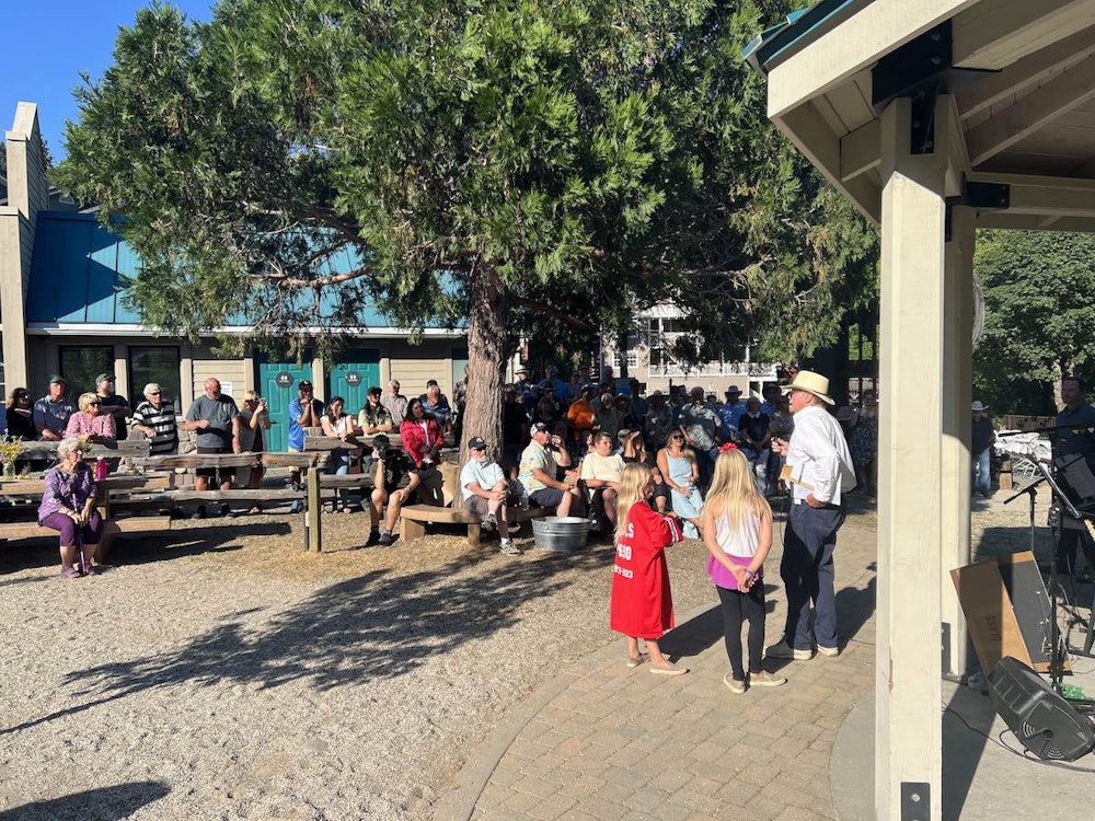 Beals addresses the crowd at his retirement party in Gold Rush Park