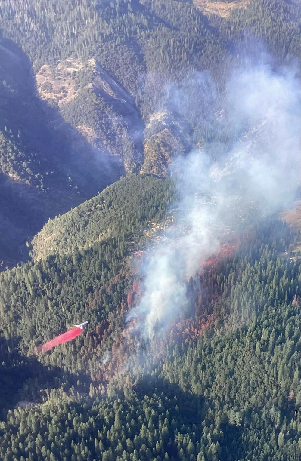 SIERRA CITY - A fire that broke out on the afternoon of Aug.11 near Moores Flat, three miles south of the historic Sierra County mining town of Alleghany, was held to 12 acres through aerial and ground firefighting resources and was fully contained on Aug. 15. The Plum Fire began on private land and was human-caused, spreading to the adjacent Yuba Ranger District of the Tahoe National Forest, TNF Public Information Officer Adam Collins-Torruella told The Mountain Messenger. “The terrain there is steep and challenging and has not seen fire in 50 years,” said Collins-Torruella. The great concern, he added, were the “ladder fuels”—grasses and small trees and shrubs on the forest bed—sending flames up into the forest canopy. “When the fire gets up in the trees it gets very difficult [to contain].” Collins-Torruella said a report of visible smoke was called in at 3:20 p.m. At 3:40 p.m. an airplane flyover confirmed the fire. The air attack on the fire involved airplanes and helicopters dropping retardant and water while crews on the ground constructed containment lines. TNF firefighters were joined by multiple agencies in the effort, with handlines around the fire at 100% and containment at 60% within 24 hours. Full containment was achieved at 3:30 p.m. on. Aug. 15. Collins-Torruella credited the “invaluable” air support and “interagency hotshot crews” as key in minimizing the spread of the Plum Fire. “We really appreciated our partners resources in keeping it small.” Assisting TNF were engines and crews from the Eldorado and Plumas National Forests as well as Carson City BLM. TNF provided updates on the fire and the cooperating agencies who assisted at their Facebook page: https://www.facebook.com/TahoeNF As of Aug. 17, the Plum Fire was on “patrol status” with firefighting personnel continuing to monitor the perimeter “making sure the containment lines are holding,” said Collins-Torruella. As The Messenger went to press on Wednesday scattered showers were falling in Sierra County. And a “Red Flag Warning for Critical Fire Conditions” was issued by the National Weather Service in Reno for Northeast California and far Northwestern Nevada from Wednesday afternoon until Thursday morning—with “abundant cloud-to-ground lightning on dry fuels” and “wind gusts up to 45 mph.” Collins-Torruella said the risk was not as high here in the Tahoe National Forest as further north in California. Among the wildfires currently burning in the far north state, the Six Rivers Lightning Complex Fire has to date burned more than 23,000 acres in Humboldt and Trinity counties. The fire began Aug. 5 in the Six Rivers National Forest near the Humboldt County town of Willow Creek and was 23% contained as of Aug. 17. More than 2,000 firefighting personnel are deployed at the Six Rivers Lightning Complex Fire. Consult https://www.fire.ca.gov/incidents/2022/8/5/six-rivers-srf-lightning-complex/ for current conditions.